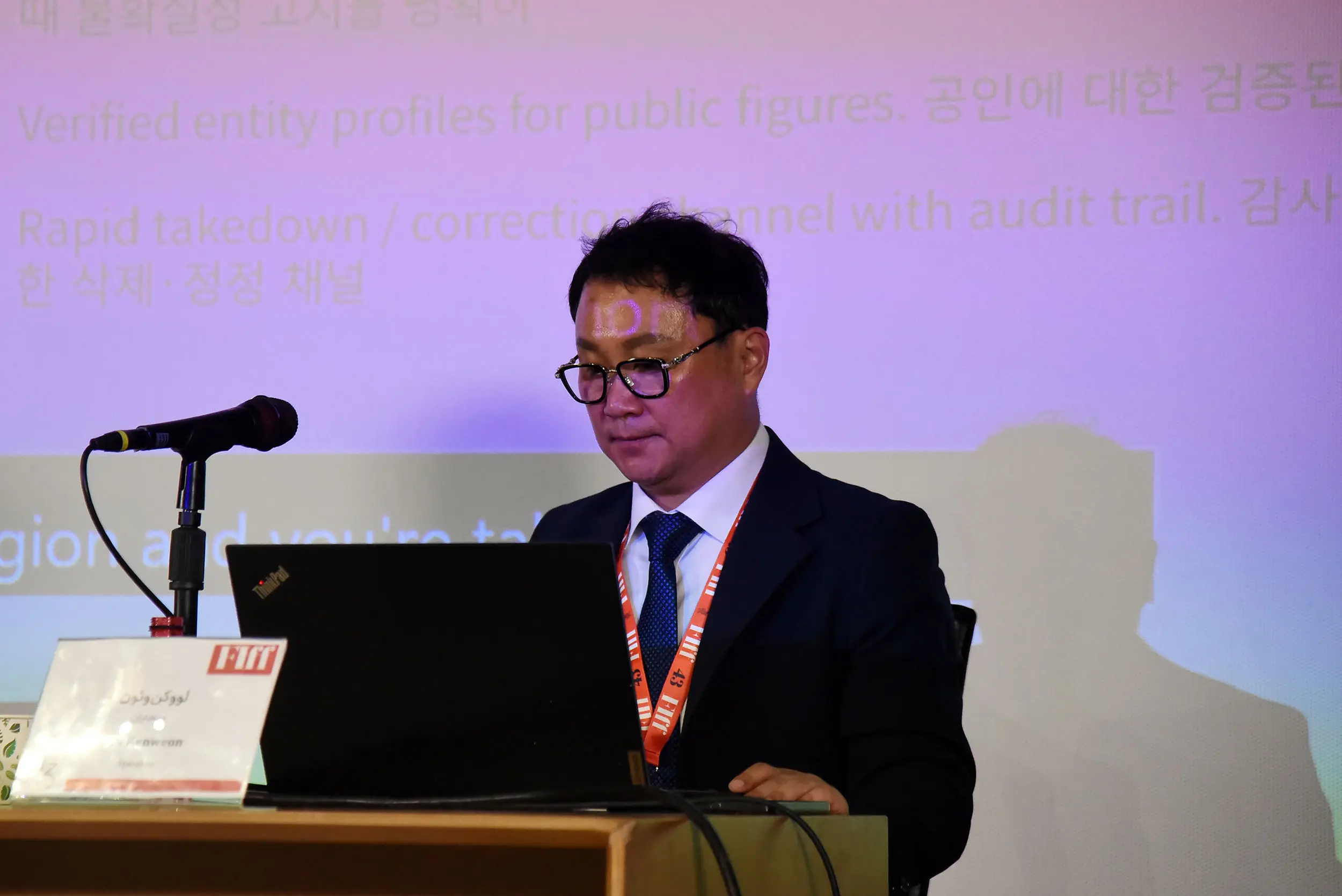به گزارش هنرآنلاین، در ابتدای نشست یزدان‌شناس گفت: هوش مصنوعی روزبه‌روز در سینما بااهمیت‌تر می‌شود؛ از پیش‌تولید تا پس‌تولید و بازاریابی. تأکید سازمان سینمایی و جشنواره جهانی فیلم فجر بر این است که دستاوردهای هوش مصنوعی مورد مداقه قرار بگیرد؛ به همین دلیل در خدمت یکی از متخصصان هوش مصنوعی در کره جنوبی هستیم. لوو کن وئون ۲۳ سال سابقه کار در حوزه پخش تلویزیونی دارد، متخصص داده‌کاوی است و در کنفرانس‌های جهانی به عنوان متخصص هوش مصنوعی حضور داشته است.