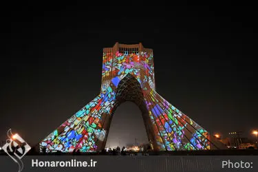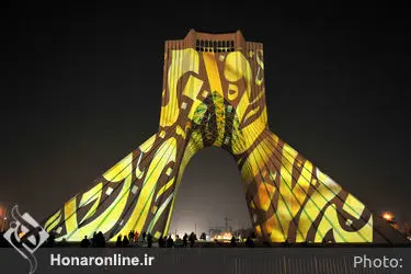 A selection of calligraphy works at the First Raqs-e Qalam(Pen Dance) International Exhibition of the Silk Road Calligraphy displayed through video mapping over Azadi Tower in Tehran. On this occasion, the exhibition of works by pioneers of Iranian calligraphy will also be opened in Azadi Tower.