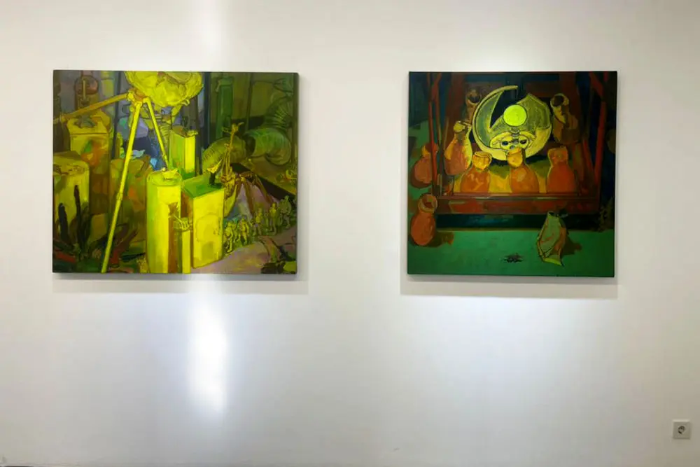 An exhibition of paintings by Sourena Zamani is currently underway at Etemad Gallery. The exhibit entitled “Born in Chaos” will continue until March 2.