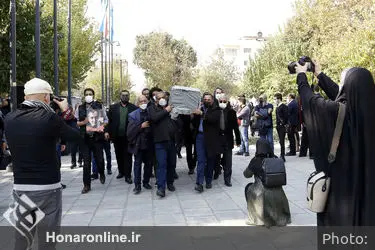 The funeral ceremony for celebrated Iranian musician Pourang Pourshirazi, who died in Tehran on November 8 at the age of 47, was held in the presence of Mahmoud Shalouie, Mahdi Afzali, Mohammad Allahyari, Hamidreza Norbakhsh, Bardia Kiaras, Babak Chamanara, and a group of artists.