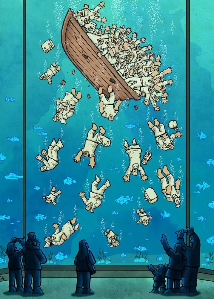 The participating works coming from Brazil, Ecuador, France, Greece, Iran, Italy, Serbia and Switzerland were competing in the three sections of editorial, gag and caricature.