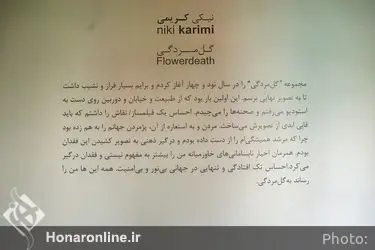 A photography show by Iranian actress, director and screenwriter Niki Karimi has opened at the Gallery of Etemad in Negarestan Garden. Titled Gol Mordegi (Flowerdeath), the show will wrap up on March 6.