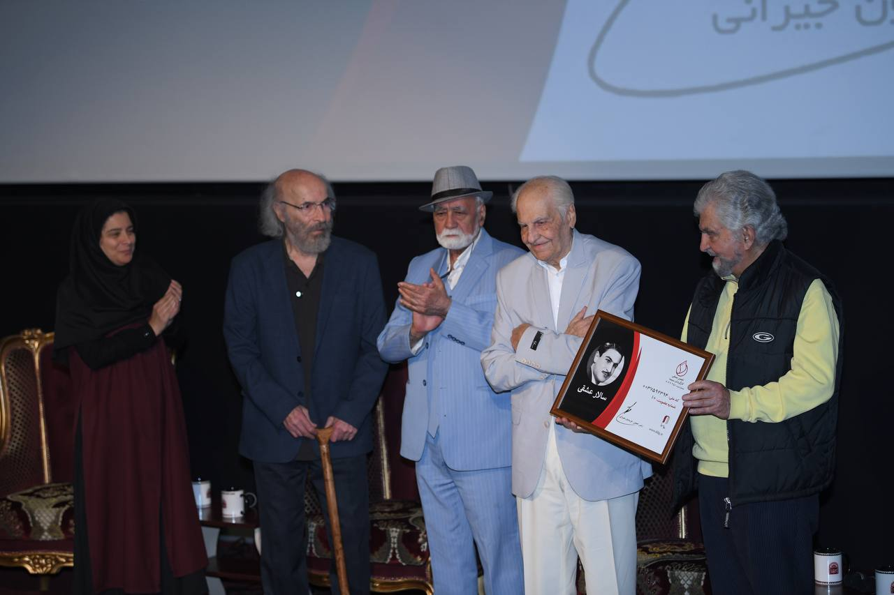 سپس با حضور کیانوش عیاری فیلمساز، وحید موسائیان، لادن طاهری مدیر فیلمخانه ملی ایران، محمد متوسلانی بازیگر و کارگردان، غلامرضا موسوی کارگردان و فاطمه محمدی مدیرعامل موزه سینمای ایران از این هنرمند قدیمی با اهدای کارت عضویت افتخاری کانون کارگردانان سینمای ایران، لوح تقدیر کانون کارگردانان سینمای ایران و لوح سپاس موزه سینمای ایران تجلیل شد.